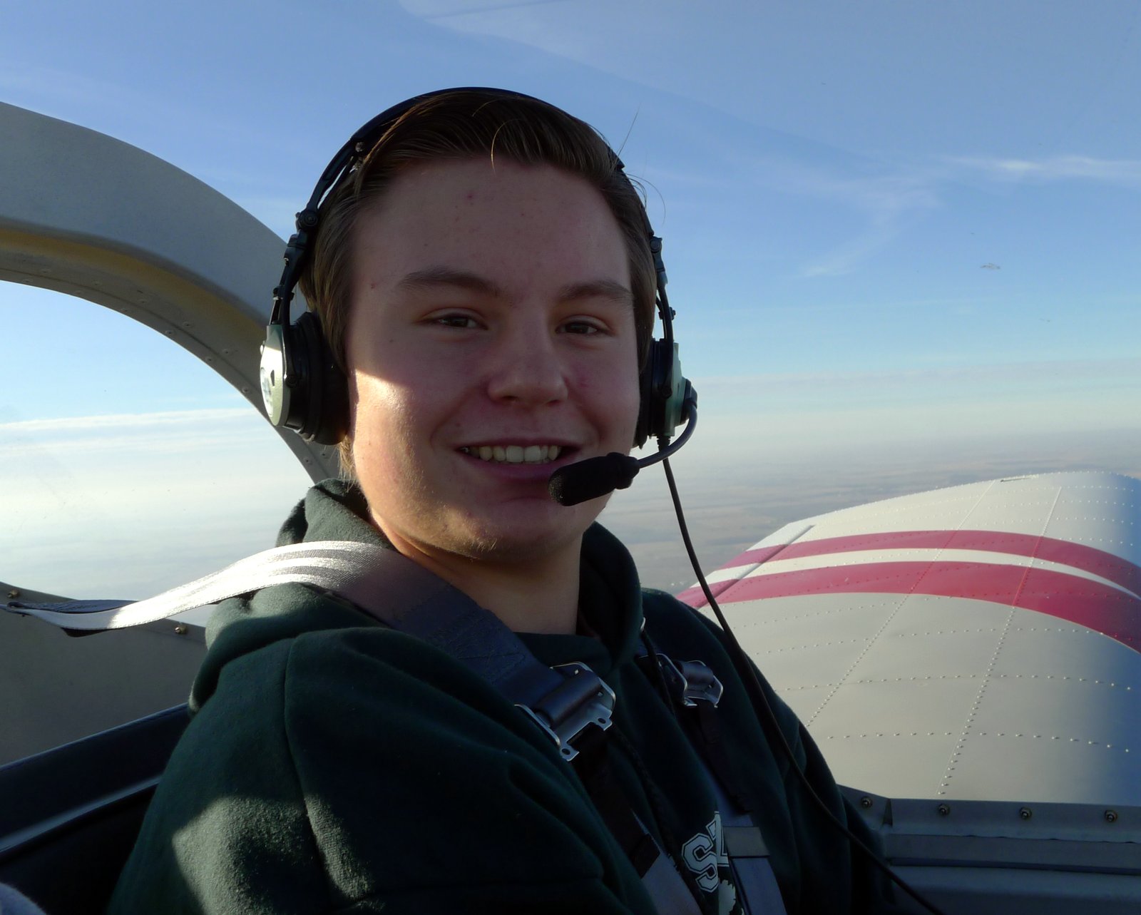 It was a great deal of fun flying with him. It was a nearly perfect morning and my four layers of clothes were enough to keep me comfortably warm, and watching the rapidity with which Austin became calm and proficient at the controls was very gratifying. As much as I would like to take credit for my incredible instructing skills, I really can't. He's just a natural. That said, there is a lot more to flying that simply possessing the physical skills, but he asks very good questions, too, which indicates that he puts a lot of thought in this. That bodes well for his future.